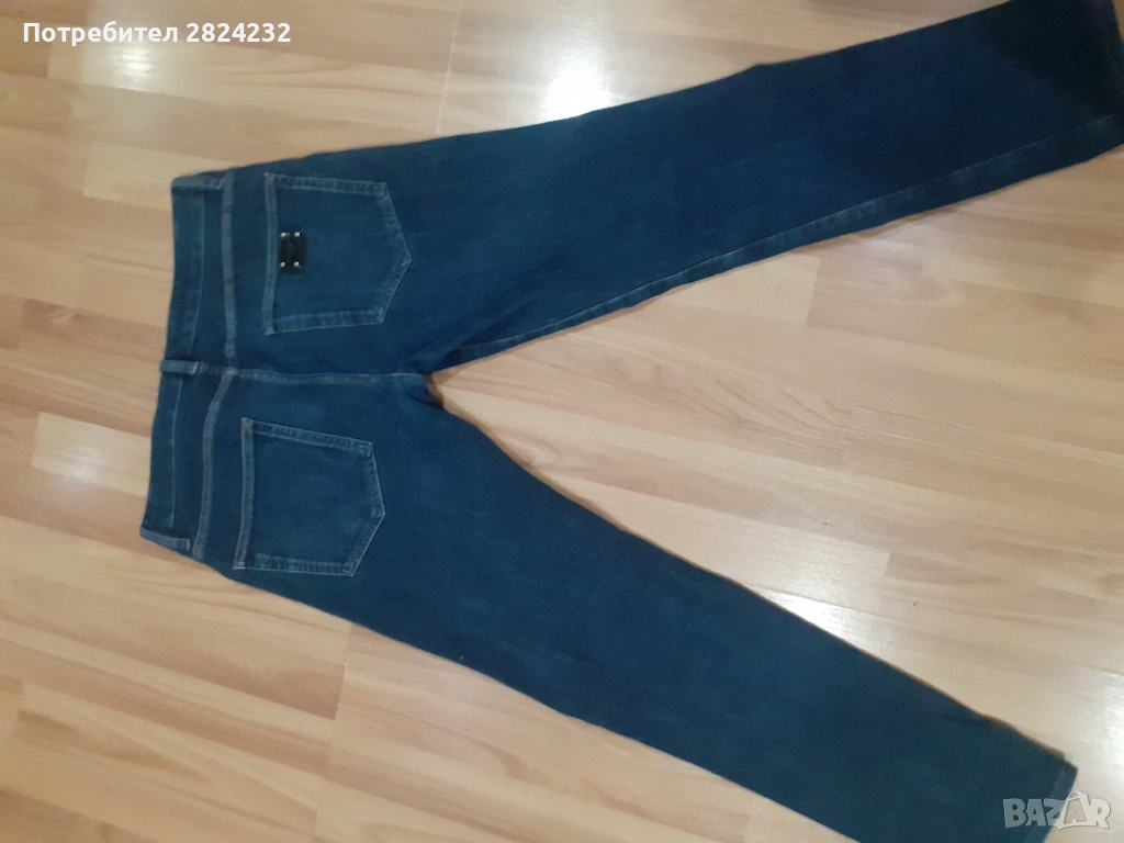 Обиколка на талия 88 см дължина на крачола от талия 98 см имат еластан в отлично състояние няма следи от употреба дънките са слим и по етикет са 33 номер