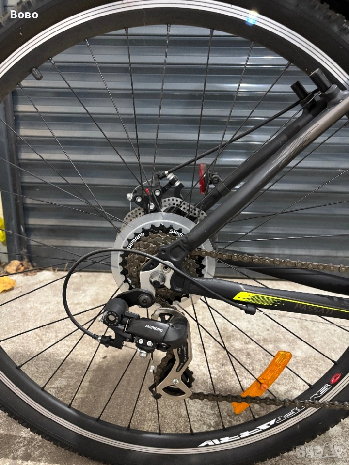 Велосипеда е в отлично състояние. Каран е само 2 пъти . Марка “PASSATI” . Преден амортисьор , заключващ. Идеален както за градско , така и за планинско каране. Гуми 29”
