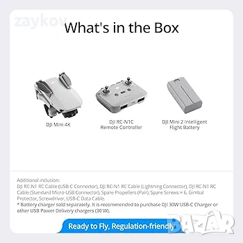 Включва DJI Mini 4K, 1 батерия, RC-N1C и всичко останало необходимо за лесно 4K летене. Чудесен и достъпен вариант за начинаещи.