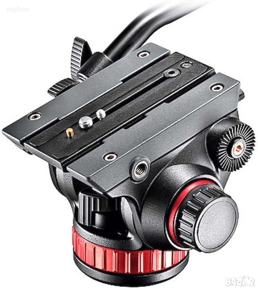 Manfrotto 502 Fluid Video Head с плоска основа разполага с флуидна променлива система за контрол на съпротивлението при панорамни и накланящи движения, която е умело интегрирана в дизайна.