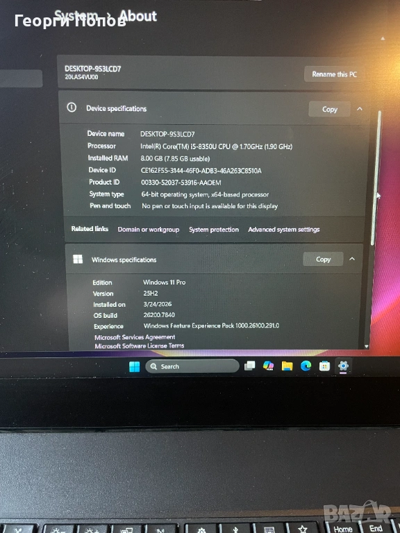 Лаптопът е в страхотно визуално състояние и технически изряден. Преинсталиран с оригинален и лицензиран Windows 11 PRO, готов за работа.