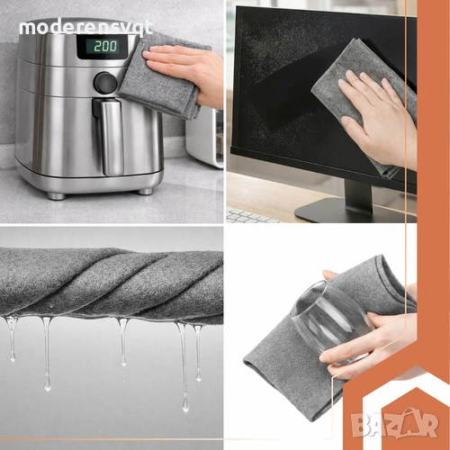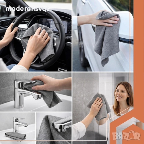 без следи или петна - специалната структура на микрофибъра позволява почистване на прозорци, огледала и стъкло само с вода, оставяйки идеално чиста повърхност