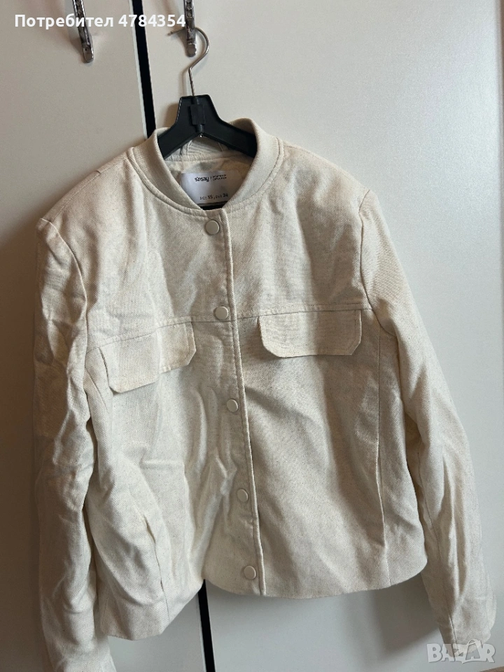 Жилетката е в цвят крем, бежов. Размерът е xs. Нова е.