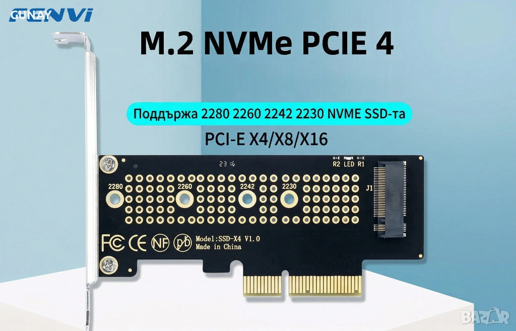 Важно: Адаптерът не поддържа M.2 NGFF SATA SSD дискове. За да постигнете максималната скорост от 64Gbps, вашият процесор и дънна платка трябва да поддържат стандарта PCIe 4.0. В противен случай ще работи на максималните скорости на предишното поколение PCIe 3.0.