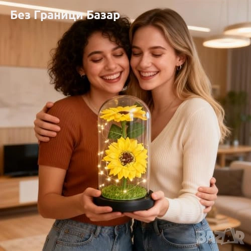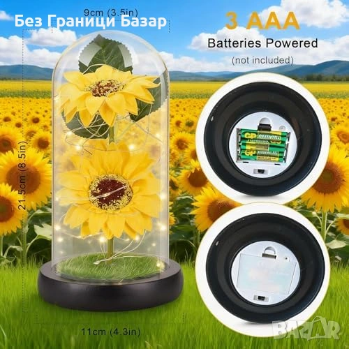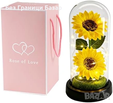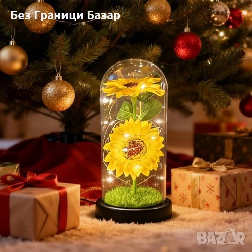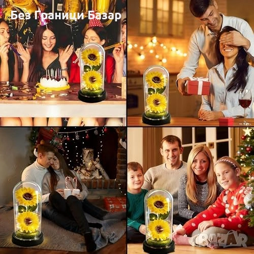 Нов Декоративен Вечен слънчоглед в стъклен купол с LED светлина подарък за майка жена баба