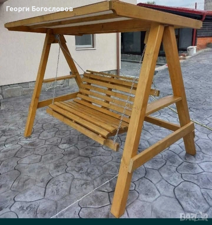 Дървена люлка за двама, подходяща за дома или градината. Здрава конструкция от дърво.Перфектно допълнение към всеки външен интериор.
