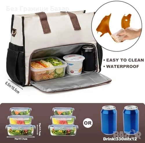 Нова Дамска чанта за лаптоп 15.6 с термо отделение за храна Жени офис работа