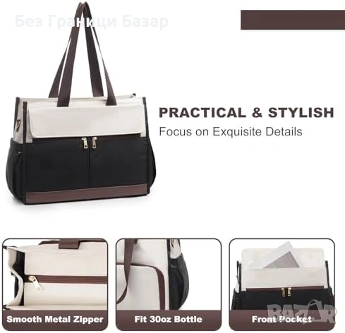Просторен дизайн с много джобове за зарядно, книги, чадър, телефон и козметика