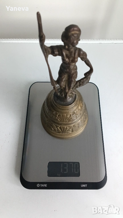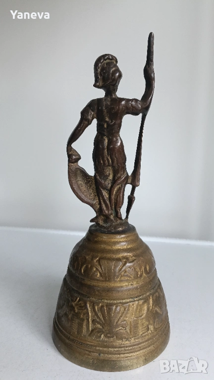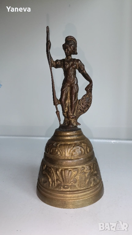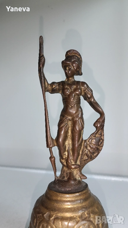 Бронзова, масивна камбана с Атина Палада ,богинята на мъдростта, стратегическата война и занаятите. Размер 23 см., 1,370 кг. Цена 80 евро.