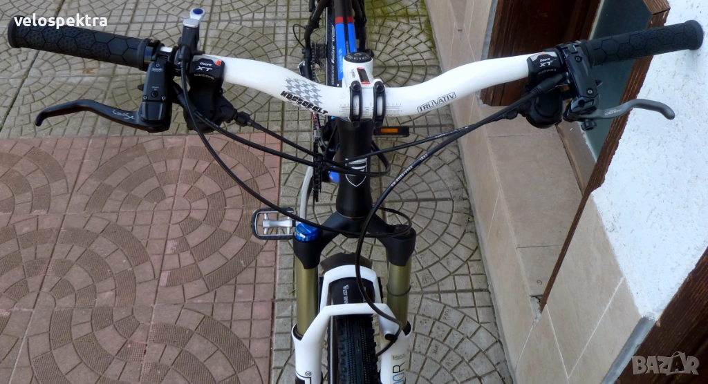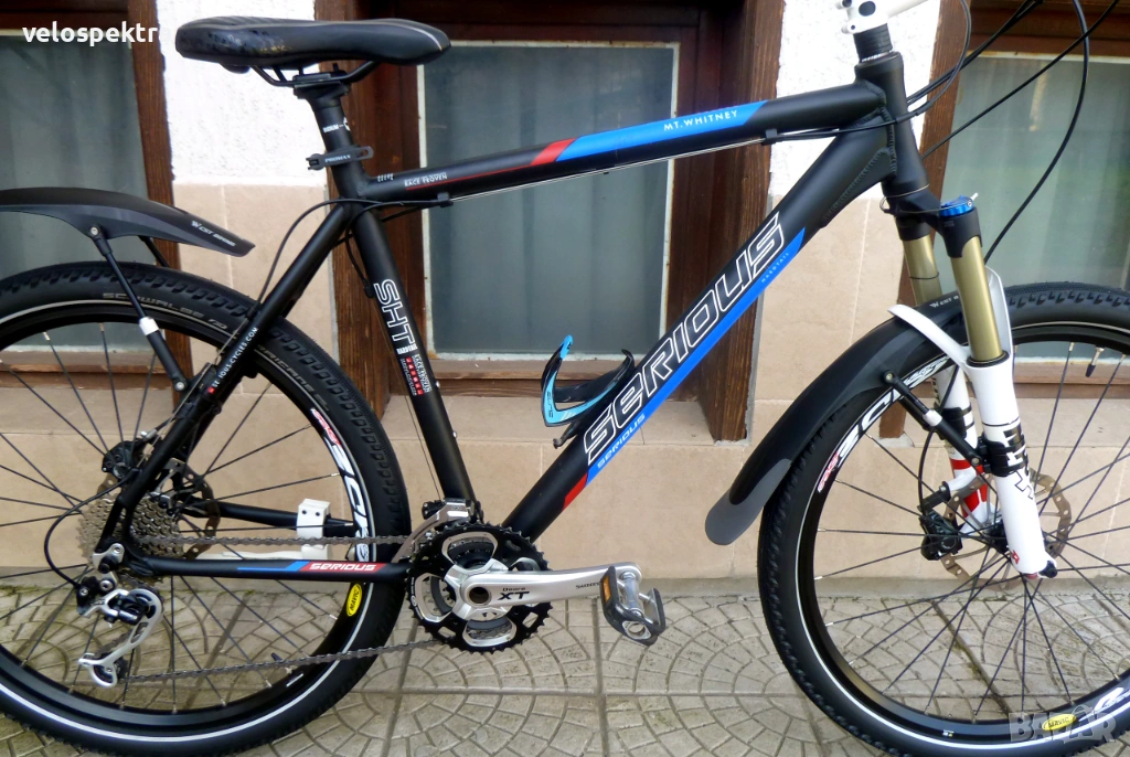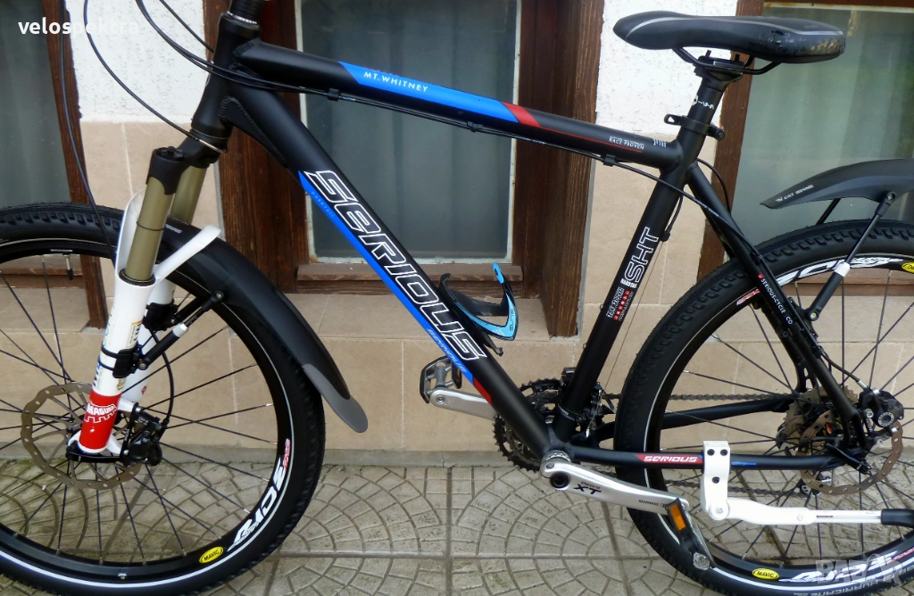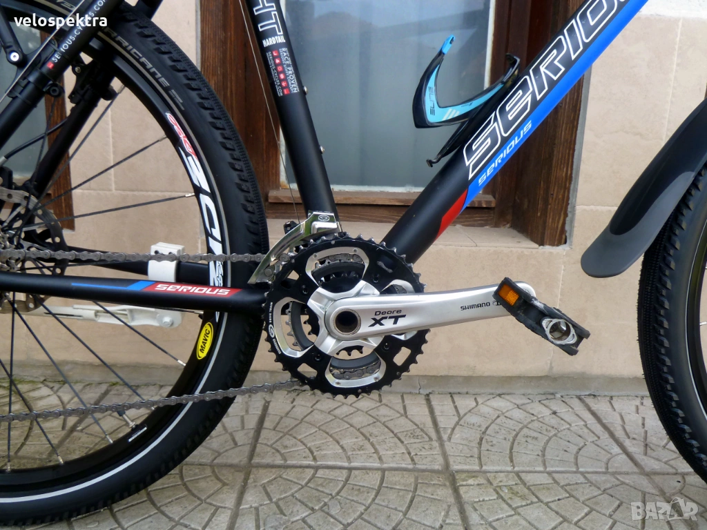 Кормило широко с лапа-алуминиеви, алуминиеви оригинални аксесоари. Курбели куха ос външни лагери Шимано Деоре ХТ.