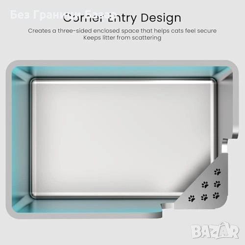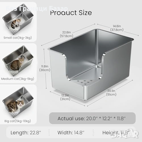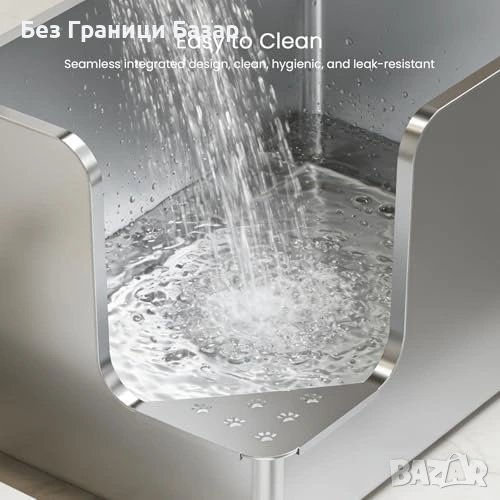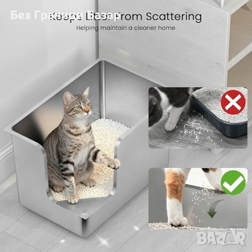 Неръждаема метална котешка тоалетна с високи бордове 30 см