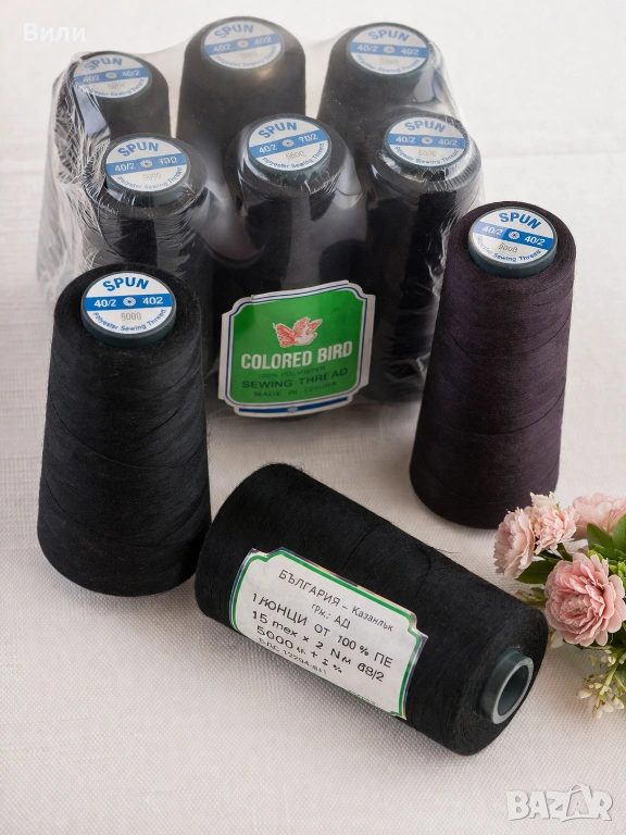 Предлагам шевни конци на големи конуси по 5000 метра – подходящи както за домашни, така и за професионални шевни машини 🧵