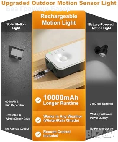 Нова външна Акумулаторна лампа със сензор за движение IP65 3 режима