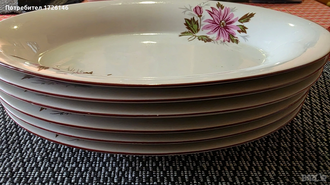 Порцеланови овални чинии с червен кант 6 броя на Разград → Обява 54057911