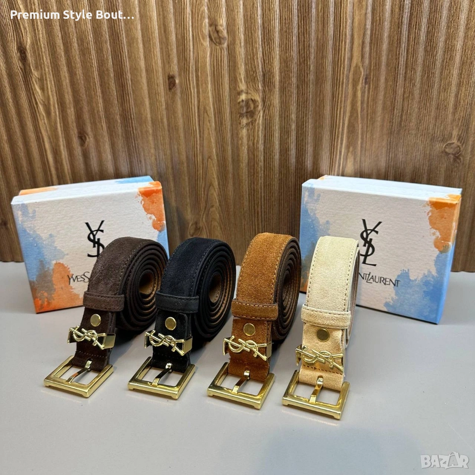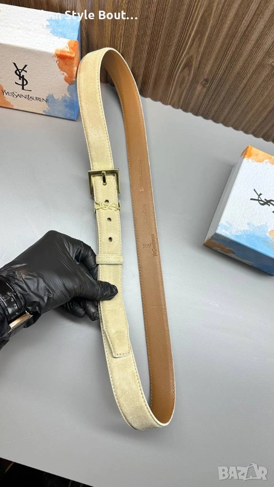Дамски кожен колан от велур Стоманена катарама против потъмняване Естествена кожа ysl saint laurent