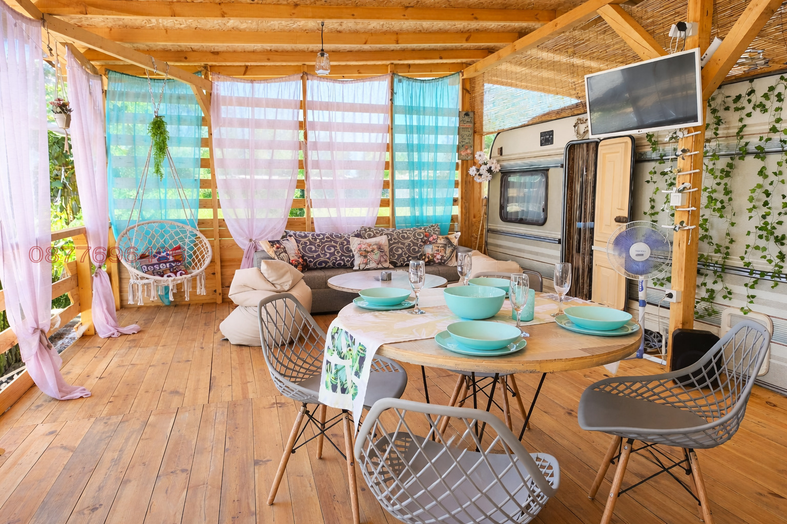 Каравана с навес с платен годишен наем !