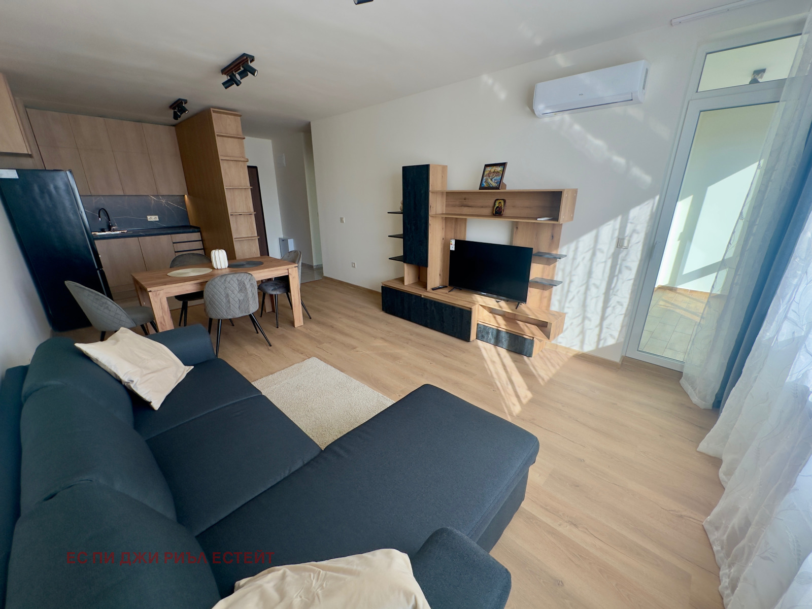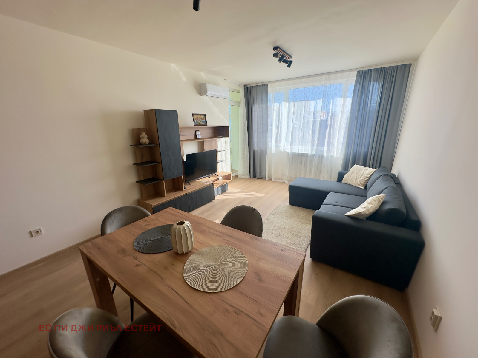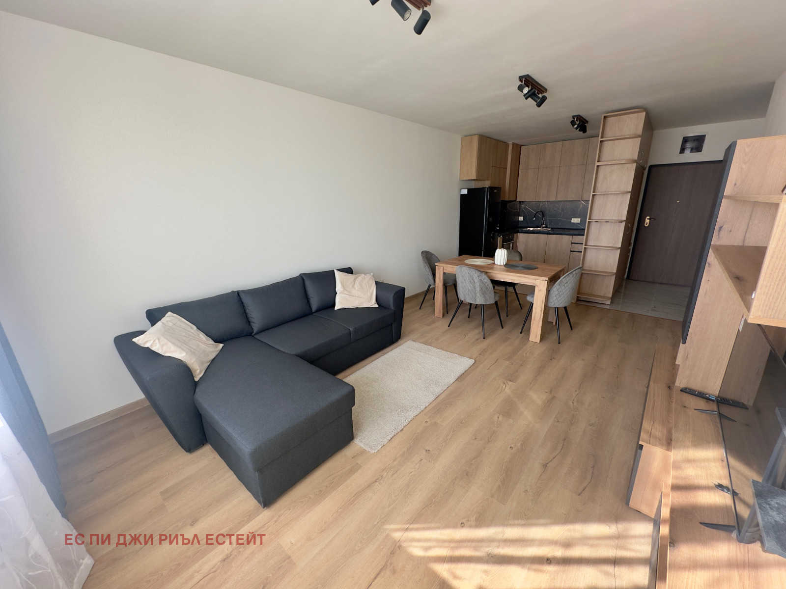 Жилището е обзаведено с чисто нови, стилни мебели и висок клас електроуреди (включително съдомиялна), подбрани с внимание към всеки детайл. Разполага с просторна всекидневна с кухненски бокс, уютна спалня, модерна баня, мокро помещение (килер) и остъклен балкон.