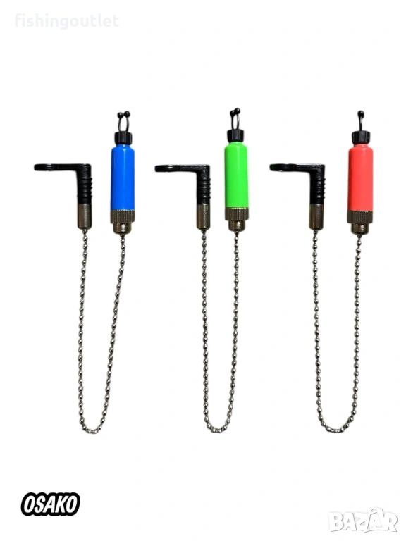 Влючва 3 устойчиви и здрави сигнализатора в син, червен и зелен цвят, както и 3 съответстващи им светещи обтегача с верижка.