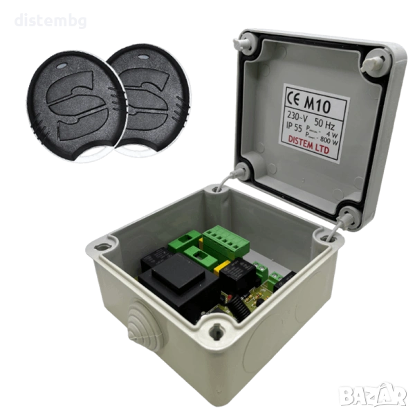 Контролен блок M10 е предназначен за дистанционно и ръчно управление на ролетки и бариери, задвижвани от реверсивни, променливотокови, асинхронни двигатели снабдени с крайни изключватели. Дистанционните управления са със скачащ код, с което се осигурява висока степен на сигурност. Паметта на контролния блок е енергонезависима с възможност за запаметяване на максимум 30 дистанционни управления. Контролният блок идва с 2