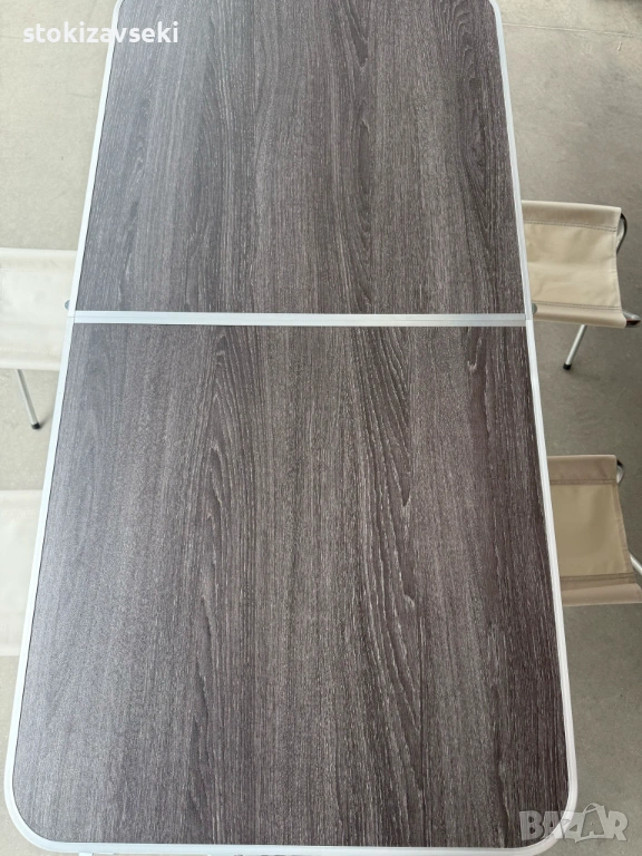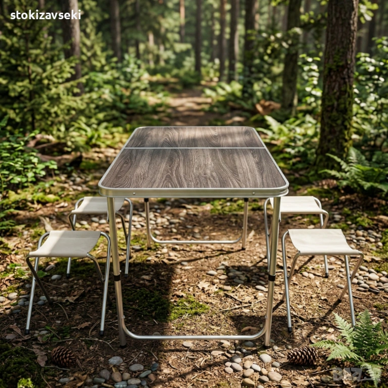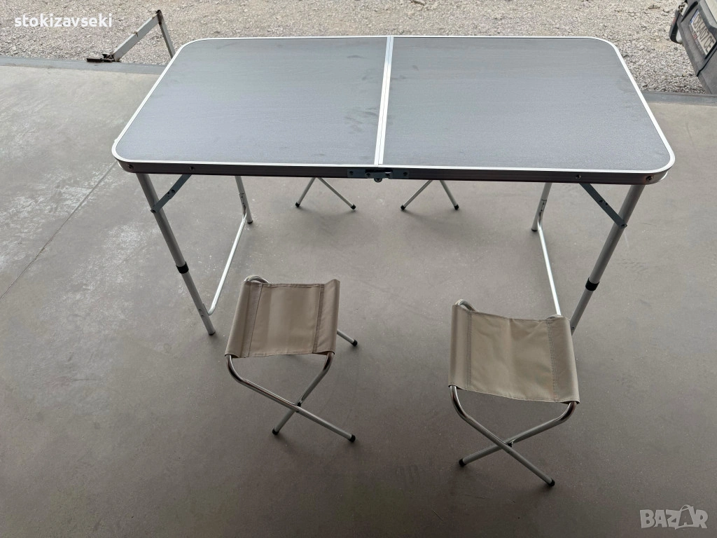 Комплект сгъваема къмпинг маса с 4 стола, регулируема височина, дизайн "куфар" в сив цвят → Обява 54058299