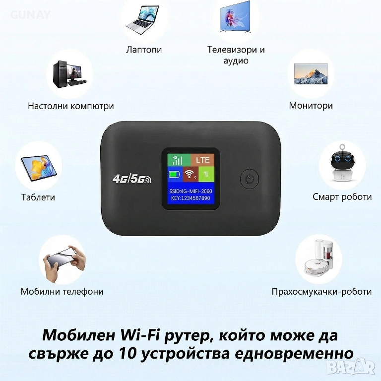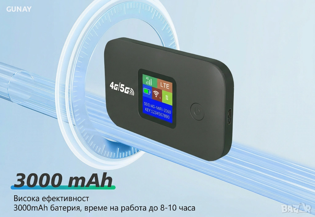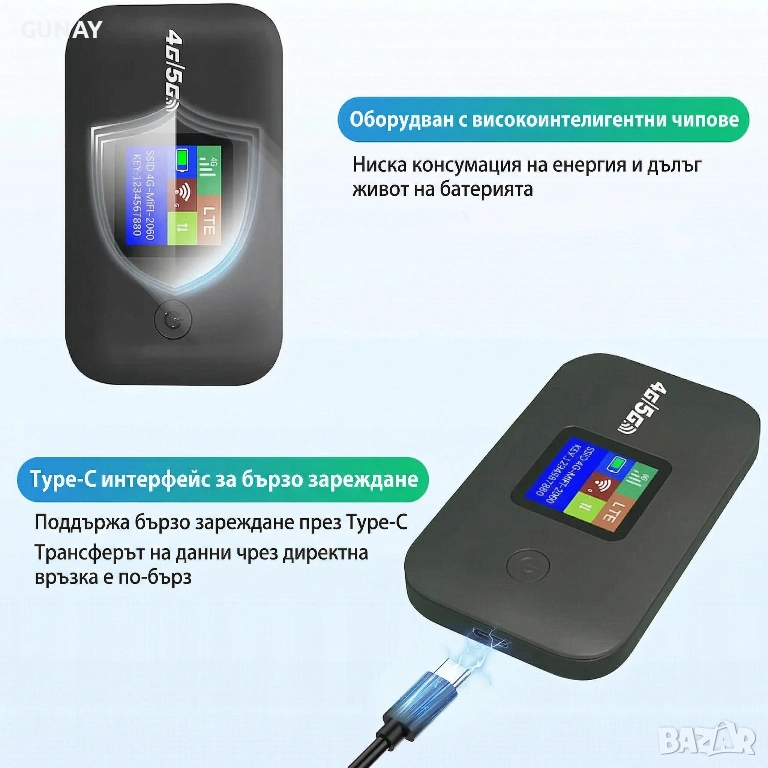 - Тип устройство: Безжичен преносим мобилен рутер (Portable WiFi Hotspot)