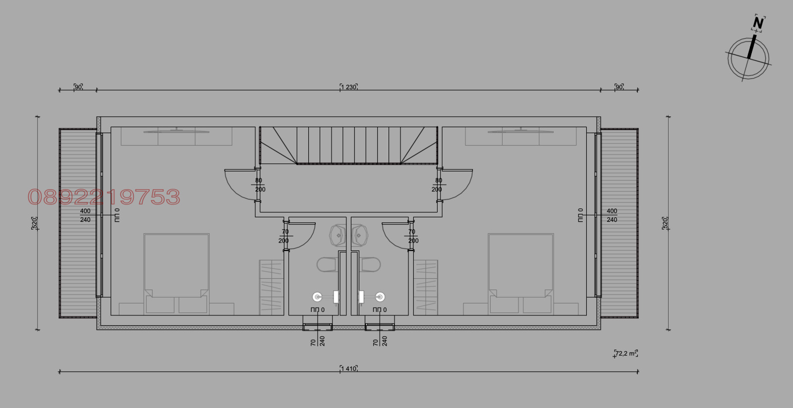 Обща разгъната застроена площ на всяка къща (РЗП): 132.50 м? без веранда...