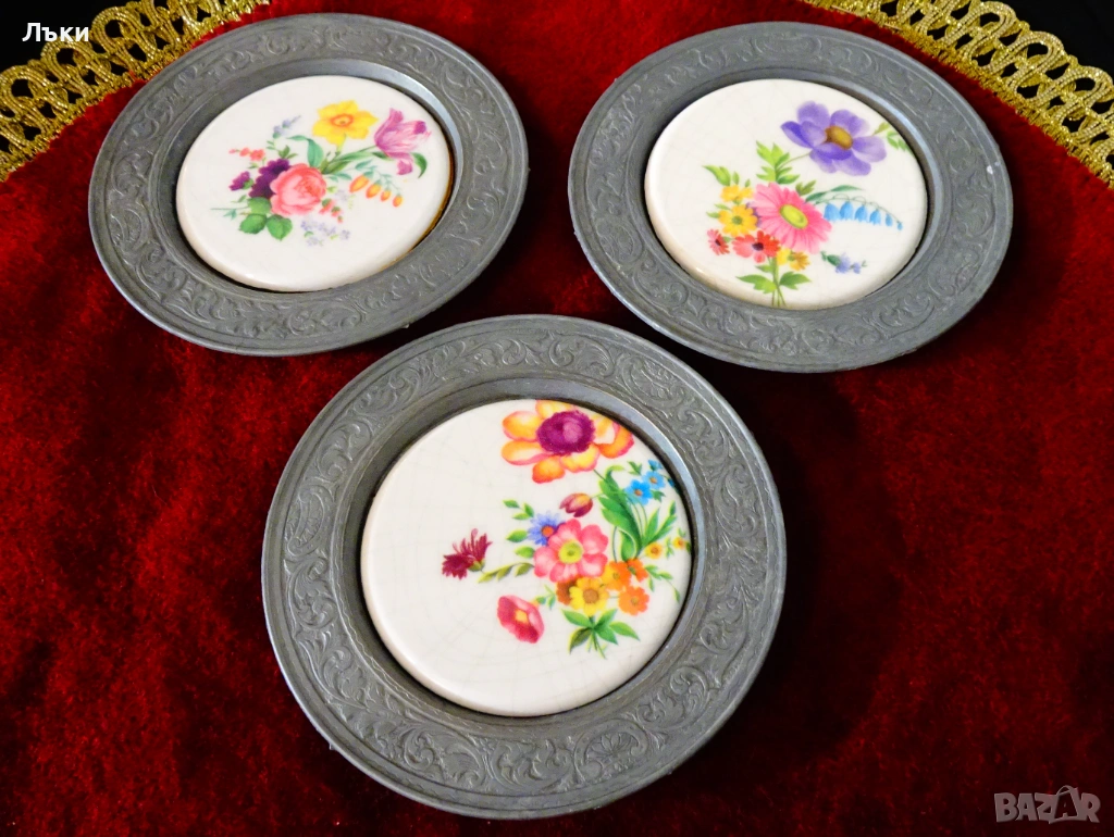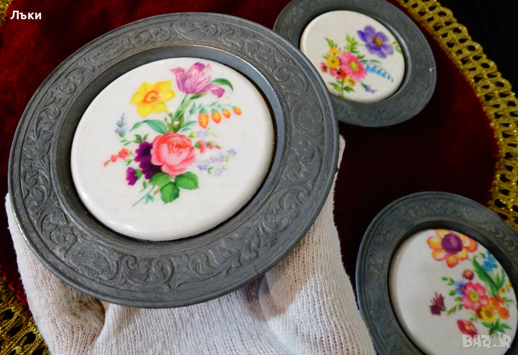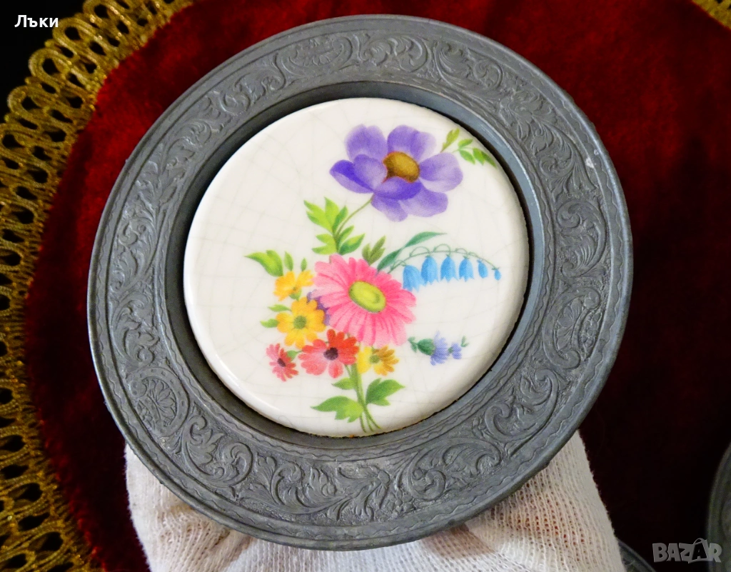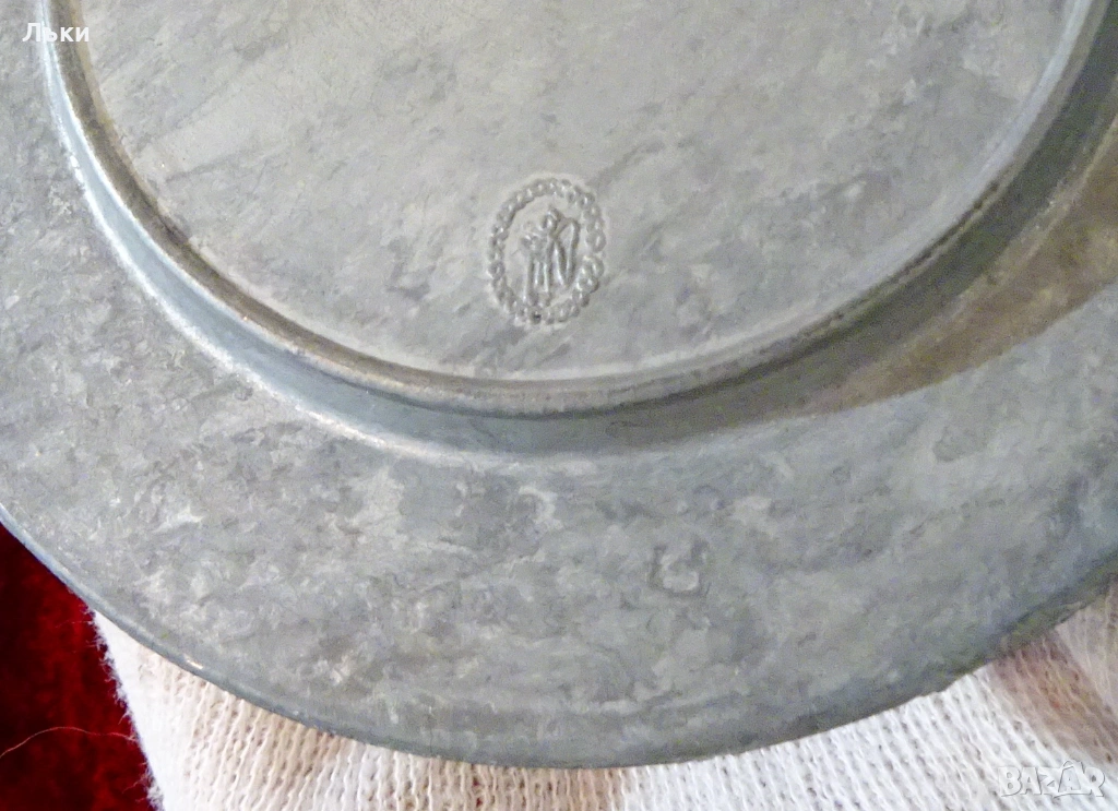 изработка от 95% калай и 5% сребро,маркирана с печат на производителя.В центъра