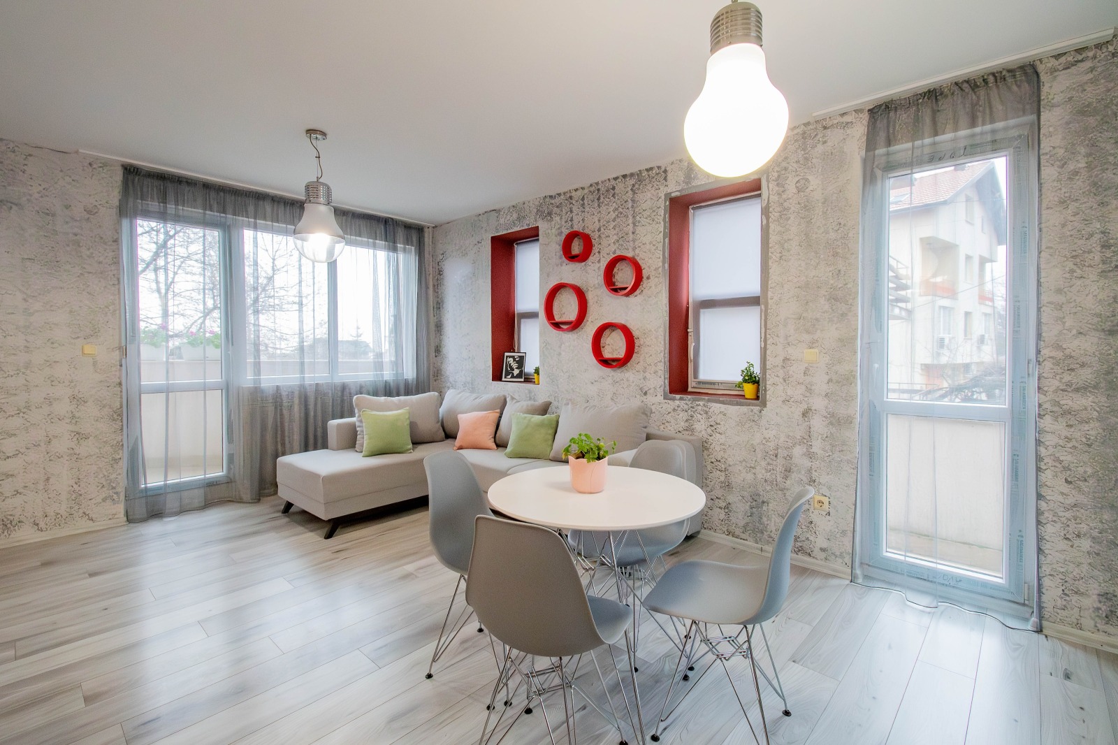 Имотът съчетава усещане за уют и естествена светлина, благодарение на големите прозорци и благоприятното изложение.