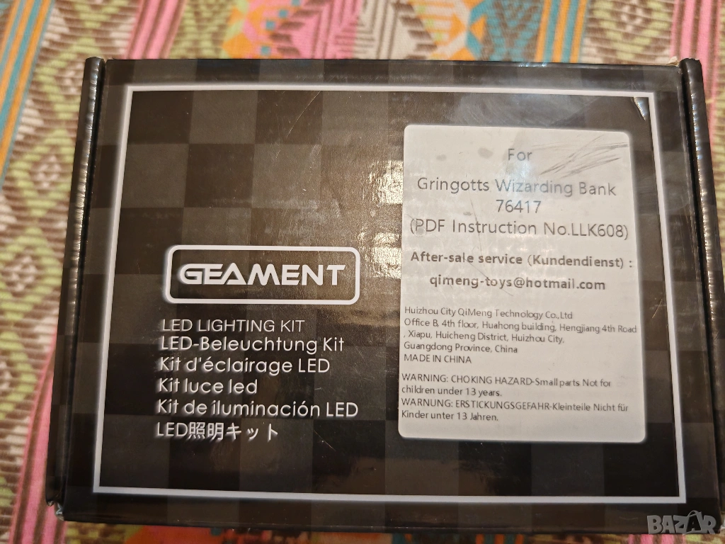 Продавам нов LED комплект за осветление, съвместим с LEGO 76417 Gringotts Wizarding Bank. Комплектът е на GEAMENT и е предназначен да придаде впечатляващ нощен ефект на модела.