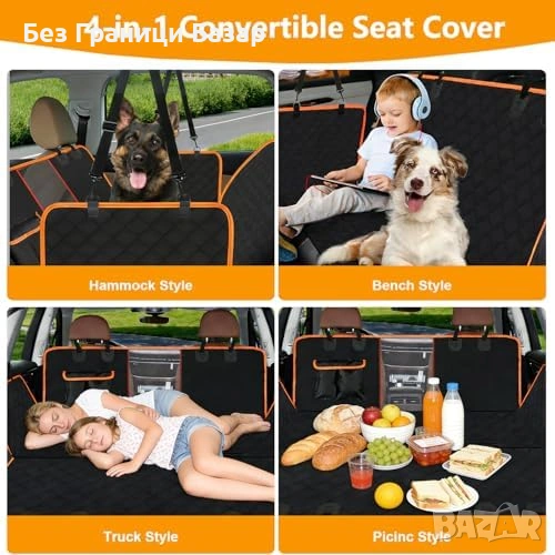 5-в-1 дизайн: седалка, хамак, режим за домашен любимец, постелка за пикник и защита за багажник