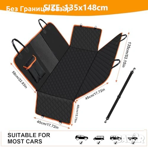 Водоустойчив протектор за задна седалка за куче с размер 148 x 135 см