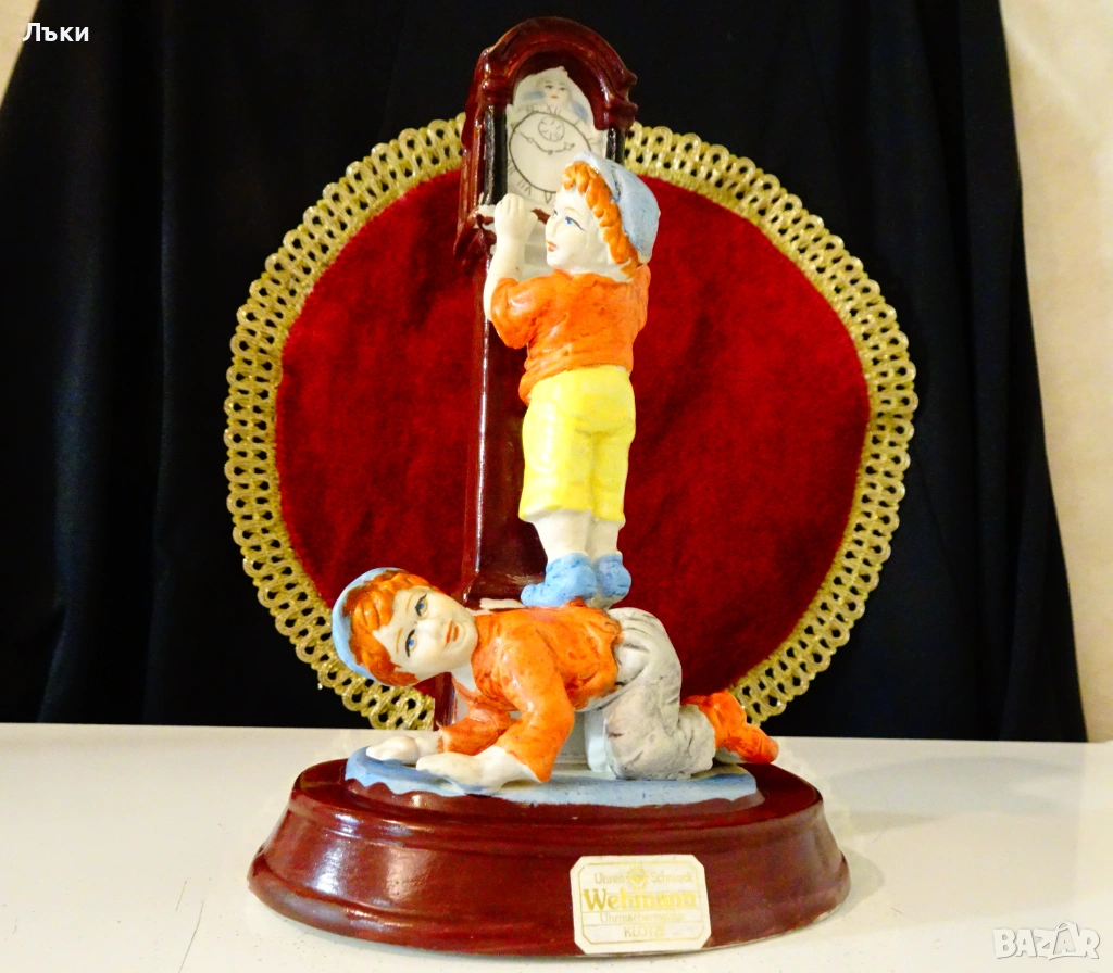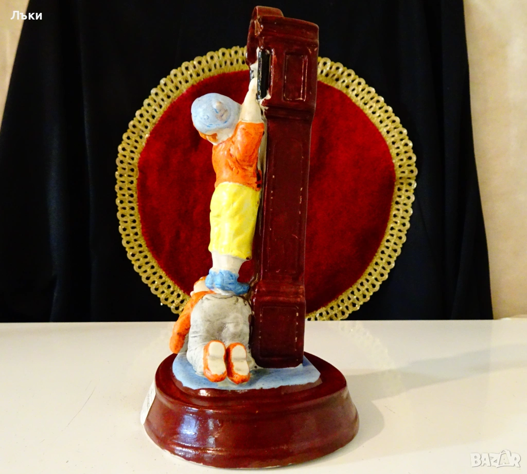 заговор,защото часовникът гледа тревожно.Статуетката има запазен златен етикет