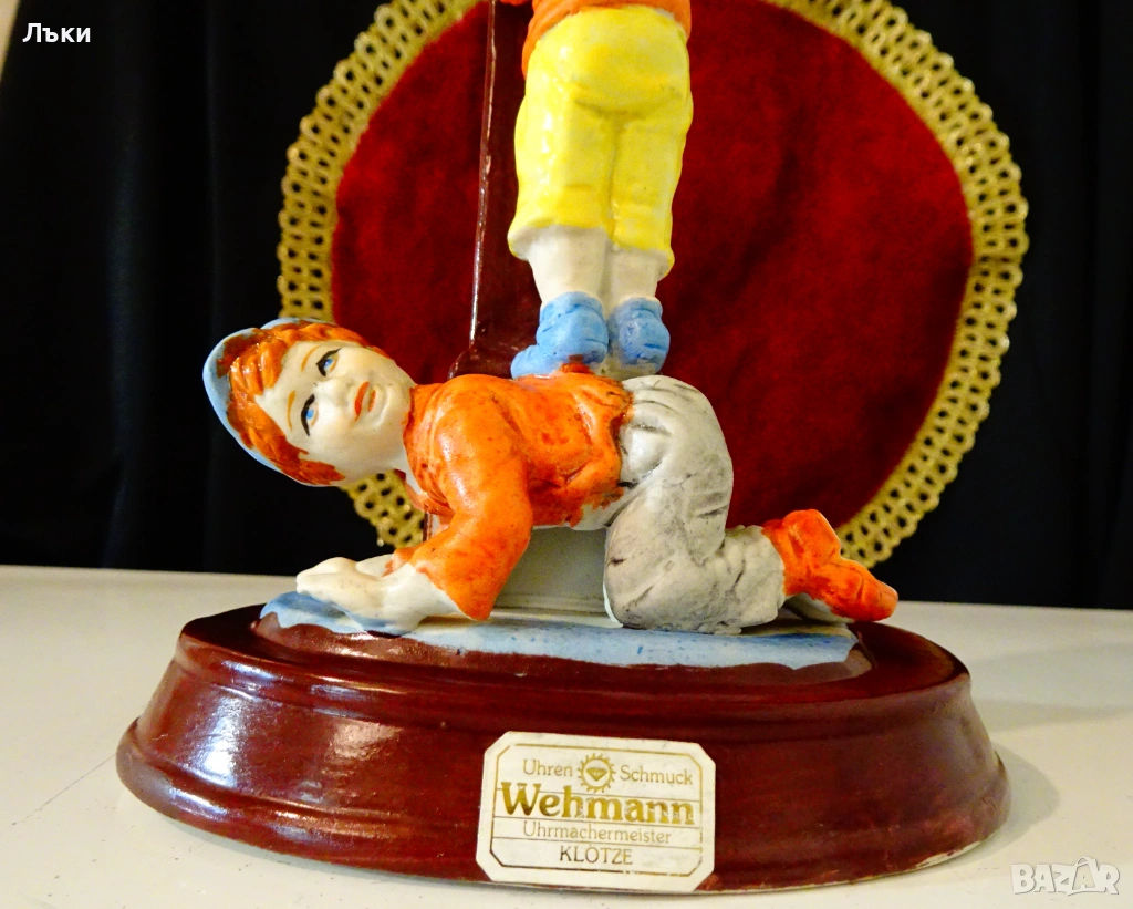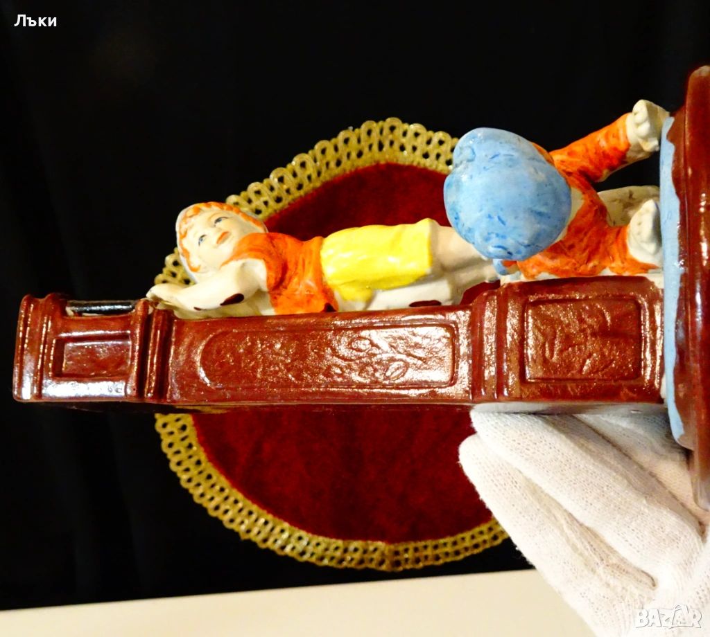 Стара немска порцеланова статуетка с прецизно изваяна весела
