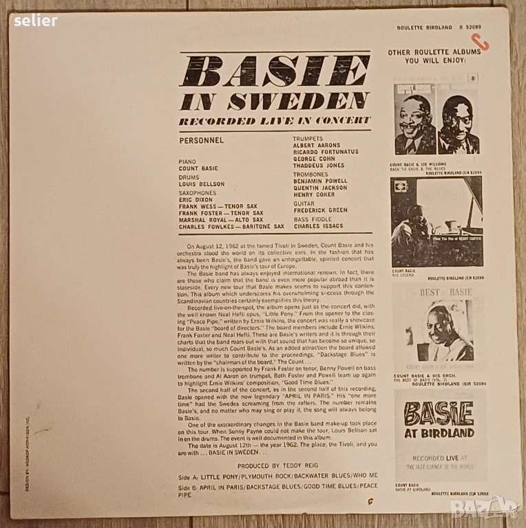Това е.албума "Basie in Sweden" на легендарния джаз пианист и бендлидер Каунт Бейзи (Count Basie).