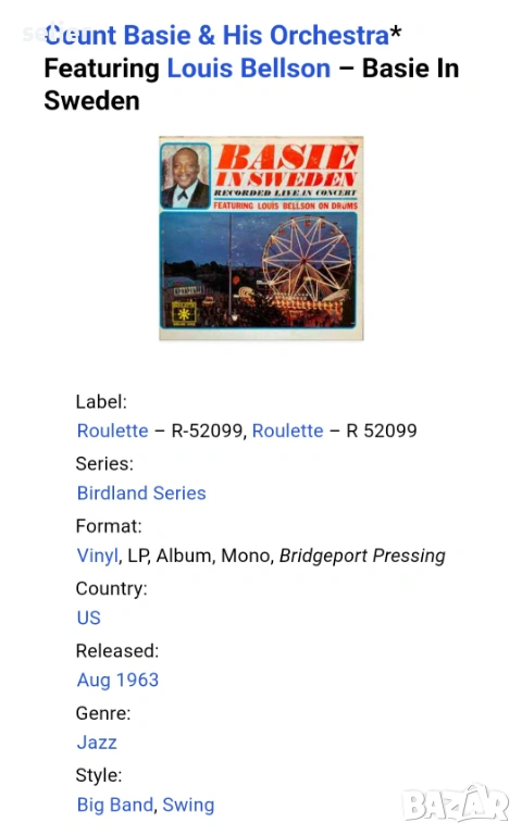 Count Basie & His Orchestra Featuring Louis Bellson ‎– Basie In Sweden Издание 🇺🇸 USA 1963г - Първ, снимка 1 - Грамофонни плочи - 54058870 Count Basie & His Orchestra Featuring Louis Bellson ‎– Basie In Sweden Издание 🇺🇸 USA 1963г - Първ, снимка 2 - Грамофонни плочи - 54058870 Count Basie & His Orchestra Featuring Louis Bellson ‎– Basie In Sweden Издание 🇺🇸 USA 1963г - Първ, снимка 3 - Грамофонни плочи - 54058870 Count Basie & His Orchestra Featuring Louis Bellson ‎– Basie In Sweden Издание 🇺🇸 USA 1963г - Първ, снимка 4 - Грамофонни плочи - 54058870 Count Basie & His Orchestra Featuring Louis Bellson ‎– Basie In Sweden Издание 🇺🇸 USA 1963г - Първ, снимка 5 - Грамофонни плочи - 54058870 1/5