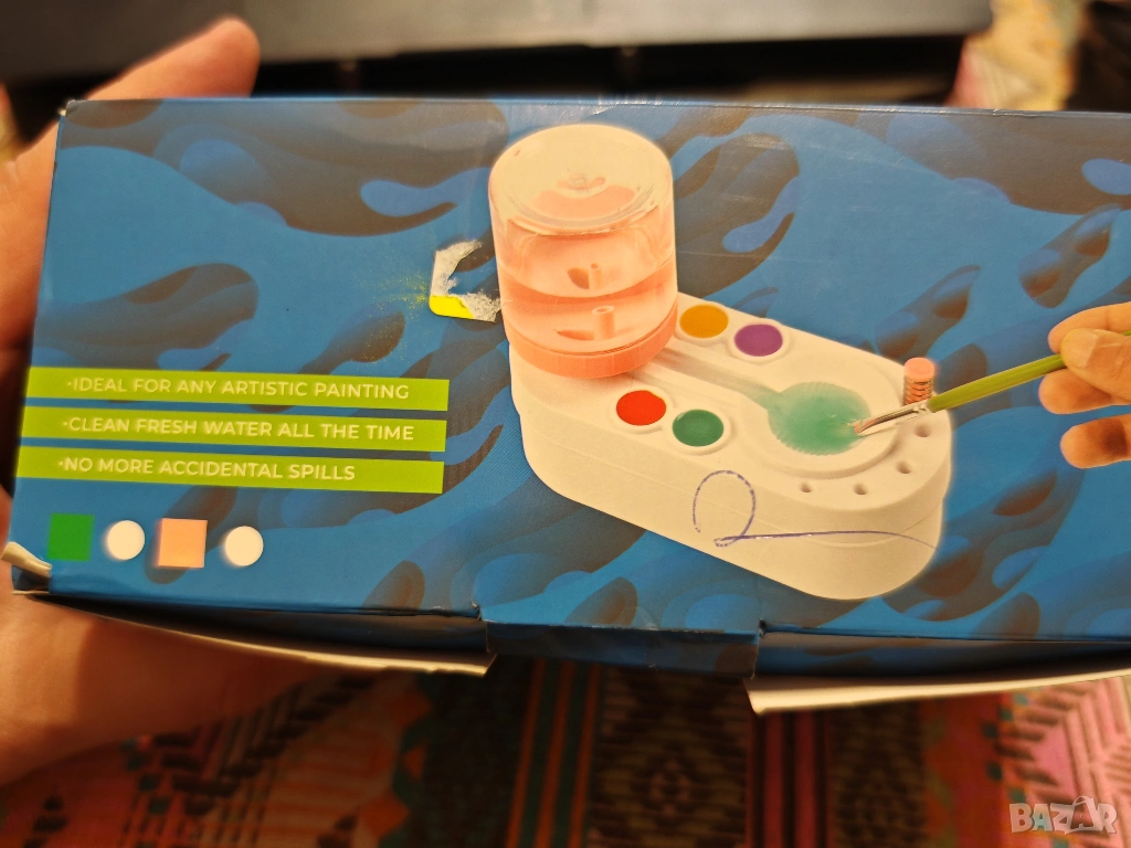 Продавам устройство за почистване на четки при рисуване с автоматична циркулация на водата. Поддържа водата чиста по време на работа и предотвратява разливане. Подходящо за ученици, художници и хоби рисуване.