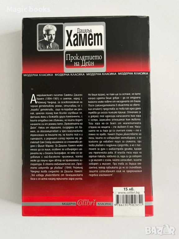Американският писател Самюъл Дашиъл Хамет (1894-1961) е смятан, наред с Реймънд Чандлър, за основоположник на черния детективски роман, отличаващ се с „корави” детективи, още по-коравия им речник, циничен поглед към всичко случващо се, фатални жени и всякакви други компоненти, с които отдавна сме свикнали, но които водят началото си от романи като „Проклятието на Дейн”. Някои от образите, създадени от Хамет, го обезсмъртяват и чрез класическите екранизации на книгите му, на които той е и сценарист, а роденият изпод перото му детектив Сам Спейд неизменно се споменава редом с Филип Марлоу.
