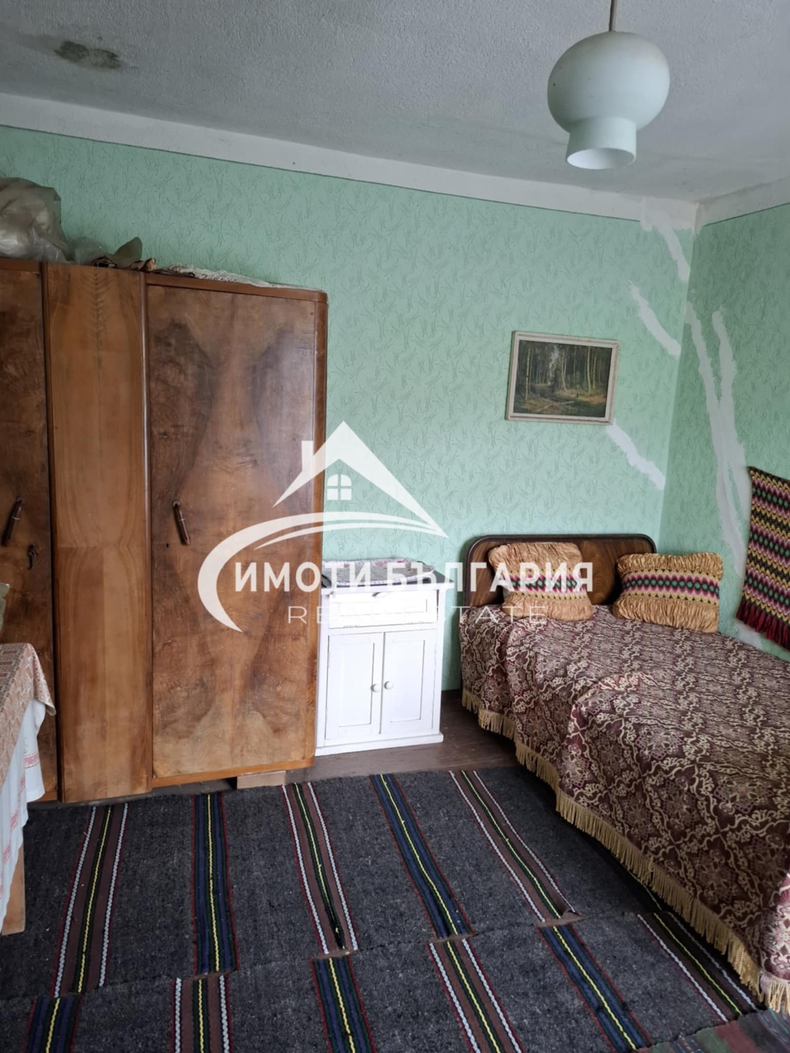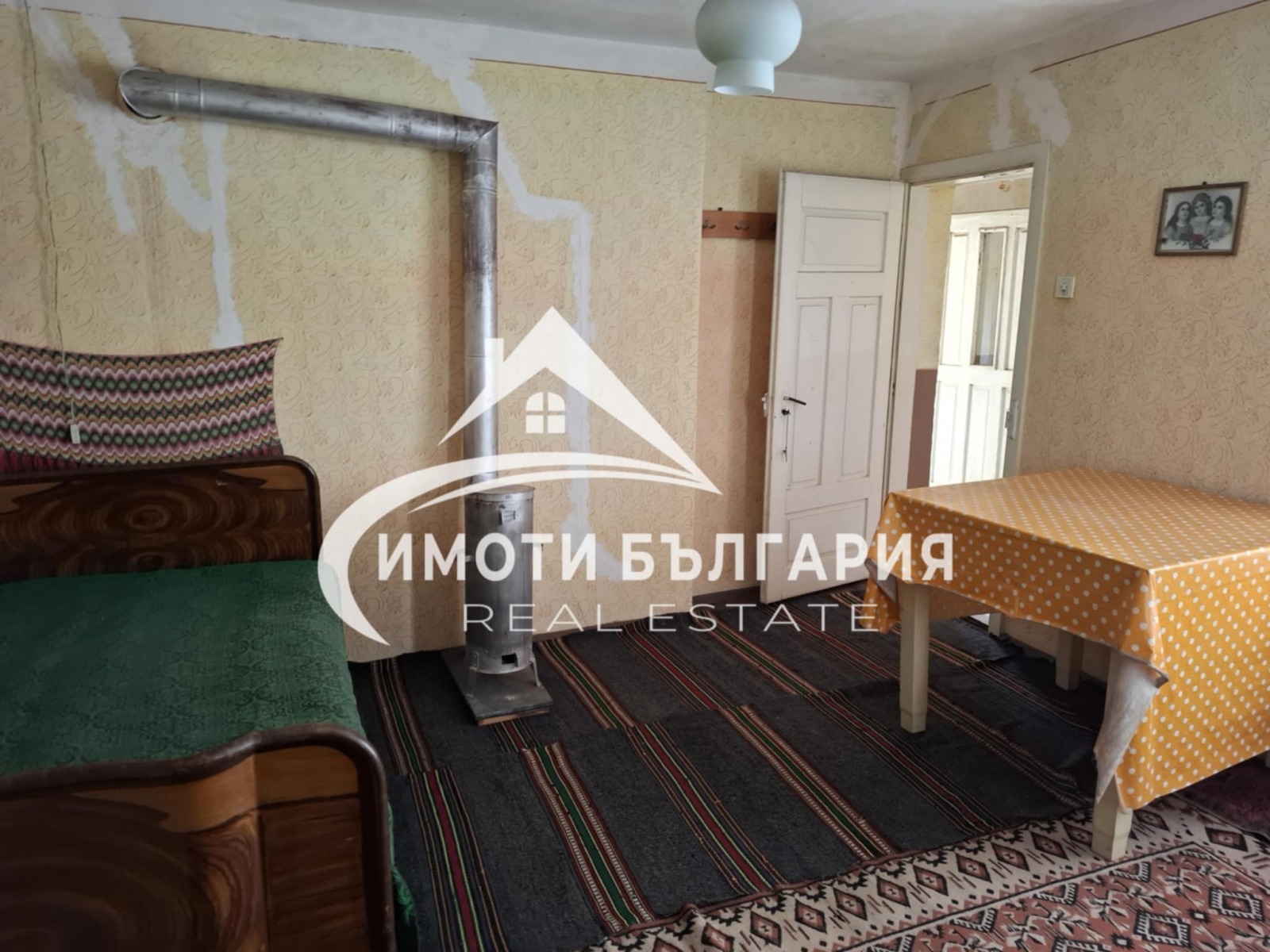 - Интериорът е със стари мебели и обзавеждане за селска къща.