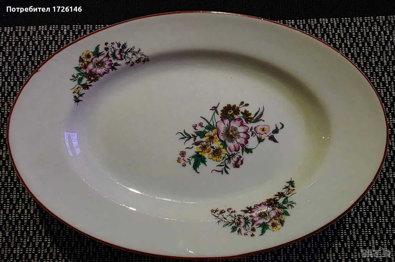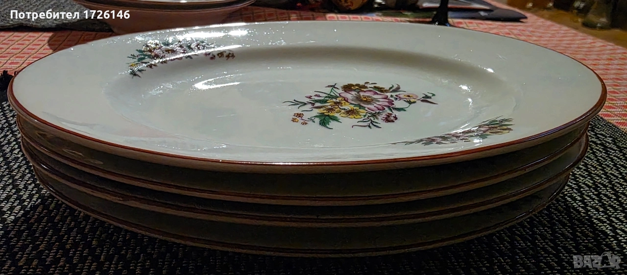 Порцеланова овална чиния 4 броя на Китка с червен кант → Обява 54059223