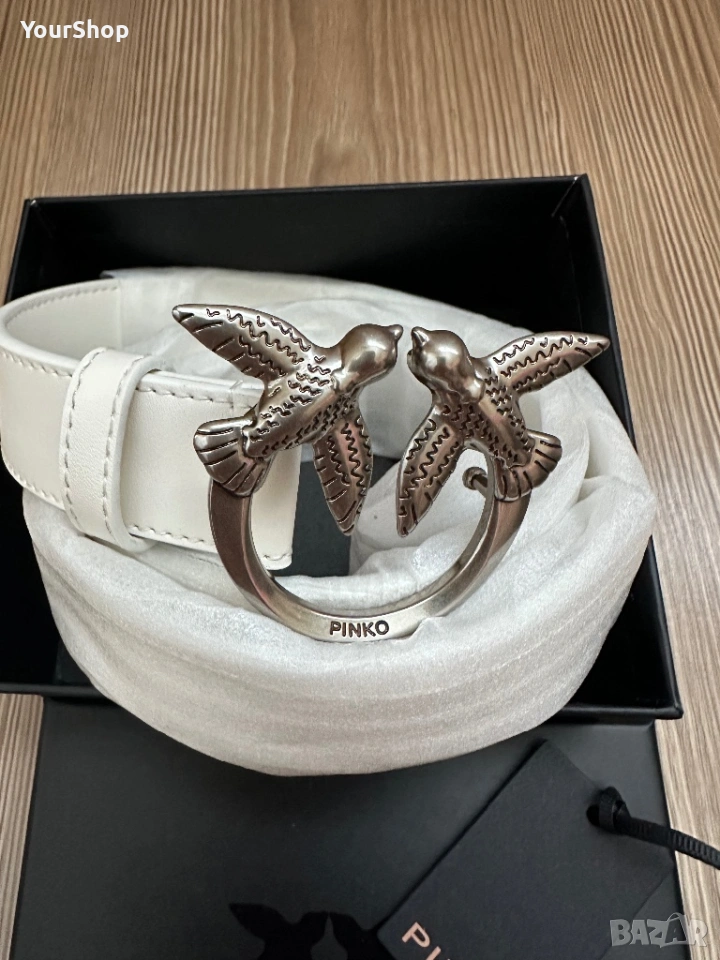 Колан Pinko в бял цвят със сребърна катарама → Обява 54059326