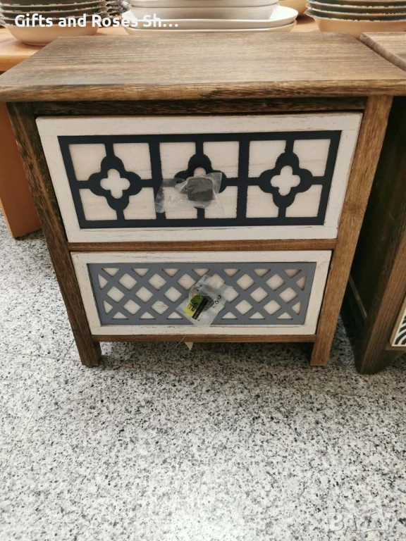 Дървено шкафче в кафяво, с две чекмеджета → Обява 54059374