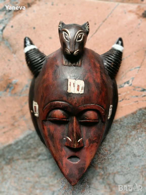 Африканка маска , дърворезба, ръчно изработена и оцветена. → Обява 54059400