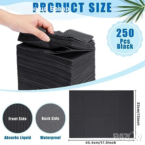 Нови Черни еднократни стоматологични лигавници 250 броя 33 x 45.5 см подложки за зъболекар и татуист