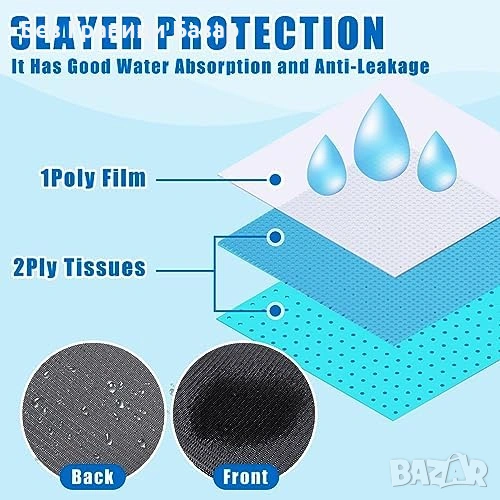 3-пластова структура: 2 слоя абсорбираща хартия и 1 водоустойчив слой