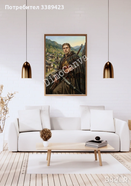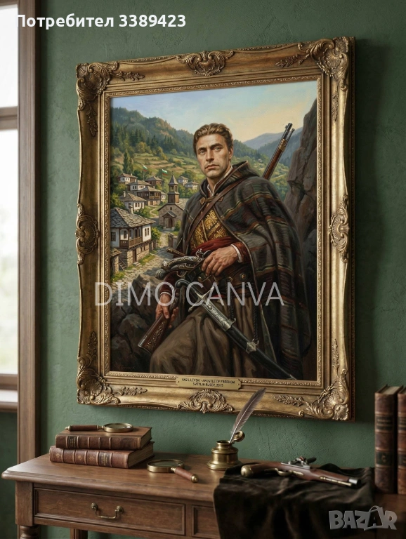 Продавам висококачествен печат върху канава (платно) на Васил Левски. Картината е в класически маслен стил и изобразява Дякона пред автентичен български възрожденски пейзаж. Дизайнът е авторски и различен от масовите репродукции.