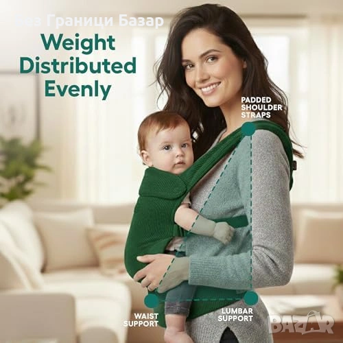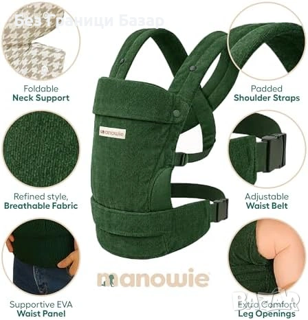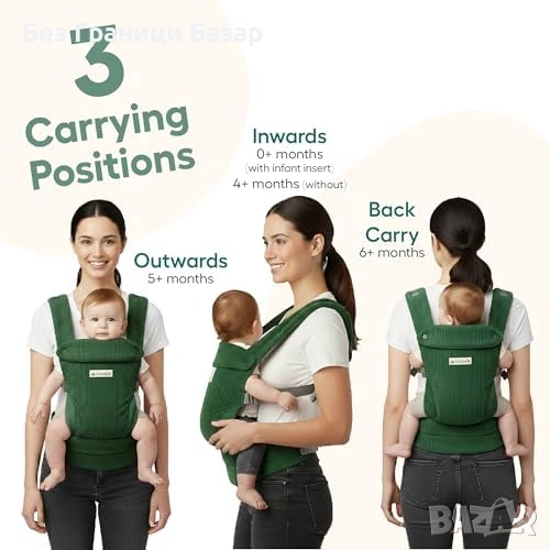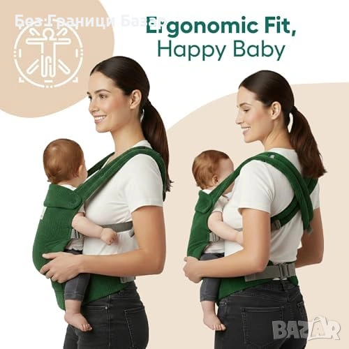 Нова Ергономична бебешка раница 3 позиции 3.2-20 кг зелена за бебе и дете регулируема с колан
