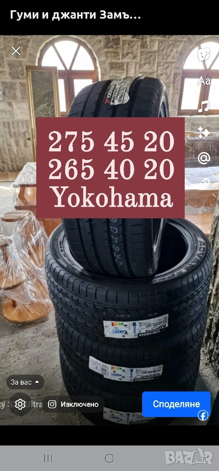 265 40 20 Yokohama 4броя Замъка Ямбол → Обява 54059699