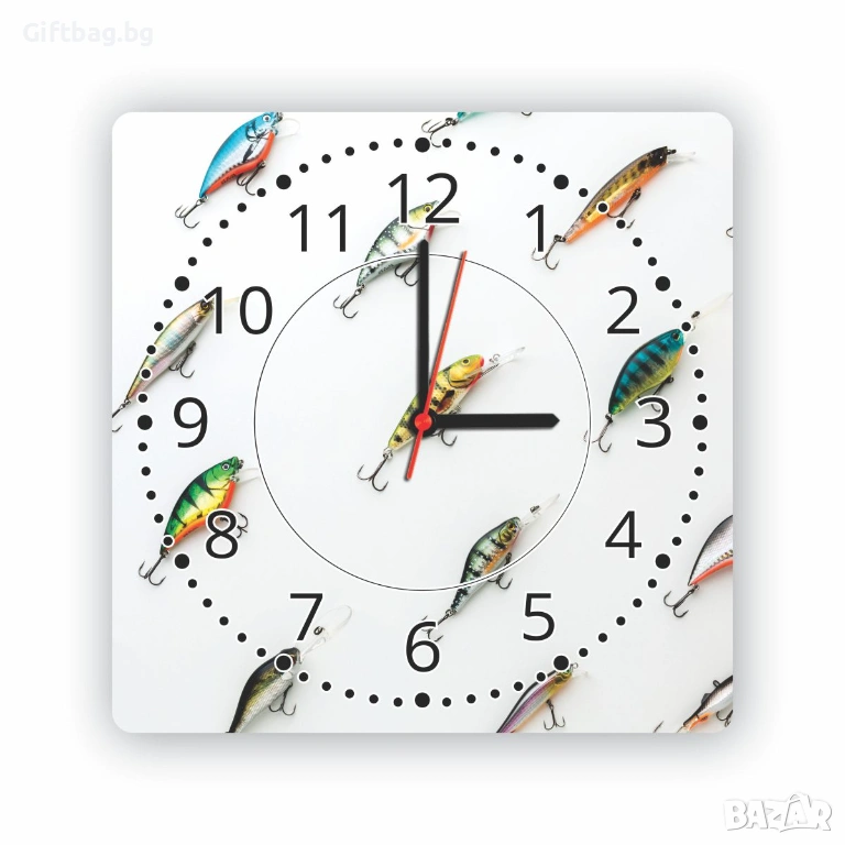 Стенен часовник „Воблери – бял дизайн“ с размер 29 см съчетава риболовна тематика с изчистена и модерна визия. Светлият фон и цветните воблери създават усещане за свежест, лекота и стил, което го прави подходящ за всякакъв интериор.
