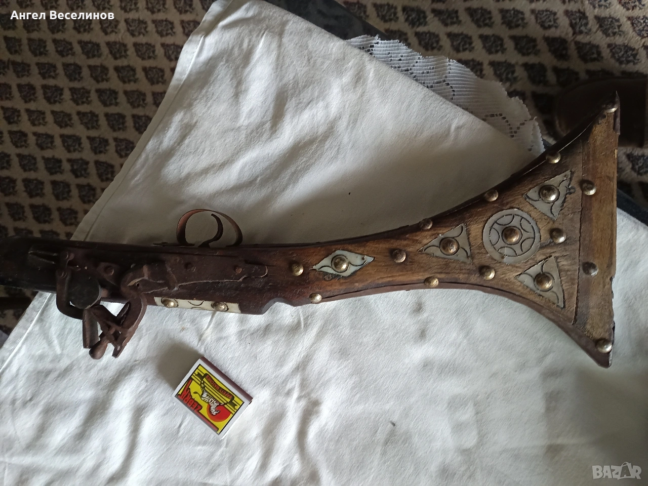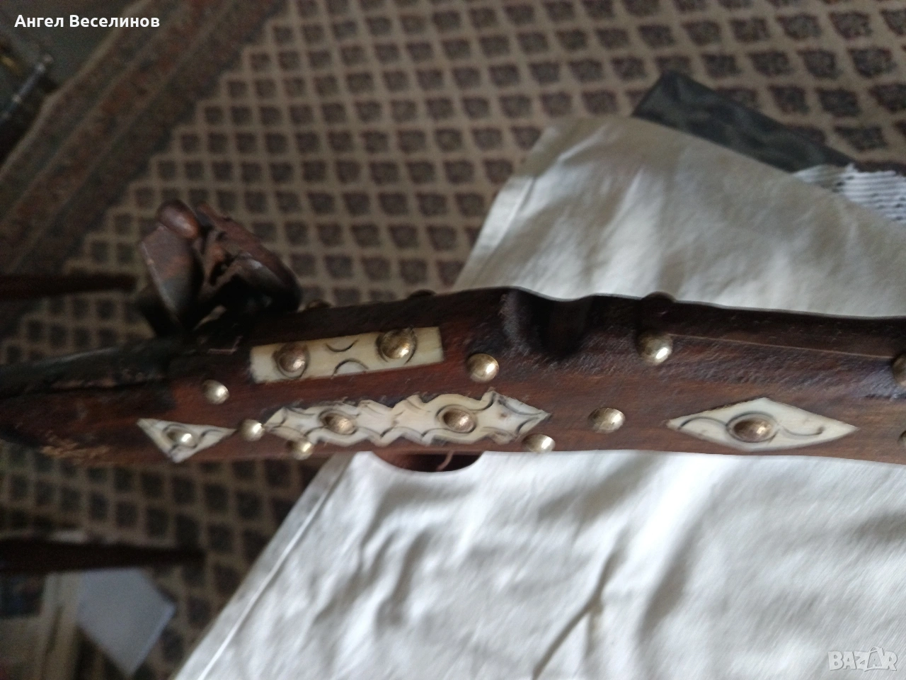 стара кремъчна пушка с костни набивки.Механизма НЕ работи 141см → Обява 54059813