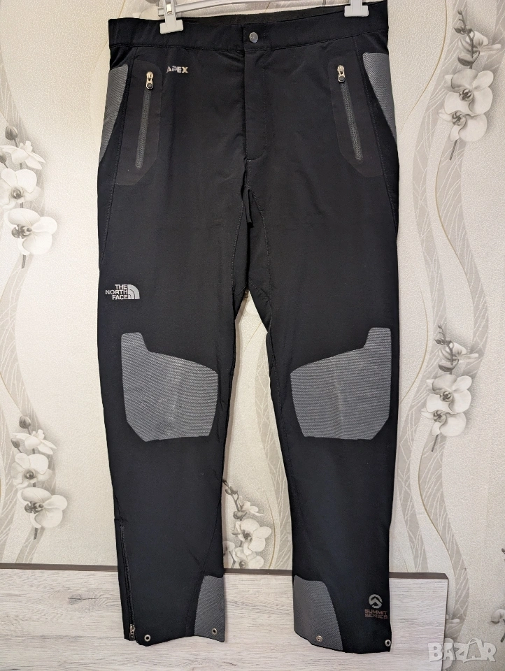 Панталонът на снимката е технически модел на The North Face, част от тяхната специализирана планинска линия Summit Series. Тези панталони са проектирани за сериозни дейности на открито като алпинизъм и трекинг, като включват подсилени зони на коленете и глезените за по-голяма издръжливост в сурови условия.
